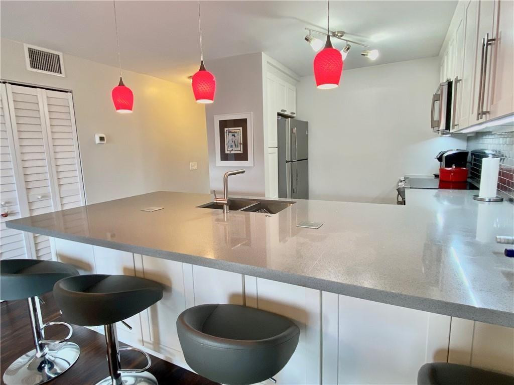 $1,596Completely remodeled, modern 2 BR corner unit condo with partial intercoastal views. Open-concept kitchen with stainless steel appliances and backsplash and quartz counters. Rare W/D in unit. MBR suite features HUGE walk-in closet with tons of built-ins for storage. Large 2nd BR/office with double closets. River Reach icompleted massive renovations with all balconies, windows and rails replaced. New hurricane windows and sliding glass doors. Enjoy 3 swimming pools, tennis/pickleball court, fitness center, kayak and bike racks, library just to name a few. Boat slips up to 50 ft available, call for pricing. Gorgeous condo in gorgeous area. You've got to see this one! Fabulous location, on its own little private island! Completely secure with one way in/out unless by boat. Motivated Seller.